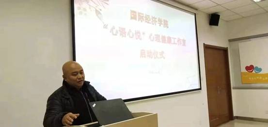 2018年11月15日,国际经济学院在北校区创业园A区京东会议室举行了二级心理辅导站“心语心悦” 心理健康工作室的启动仪式。学生管理中心心理健康办公室主任郑铮,心理健康中心教研室主任张亚男,国际经济学院党总支副书记张孝峰,学生管理科长荣超,心语心悦心理健康工作室负责老师常伟,学院辅导员和各班心理委员、宿舍心灵使者参加了此次心语心悦心理健康工作室的启动仪式。