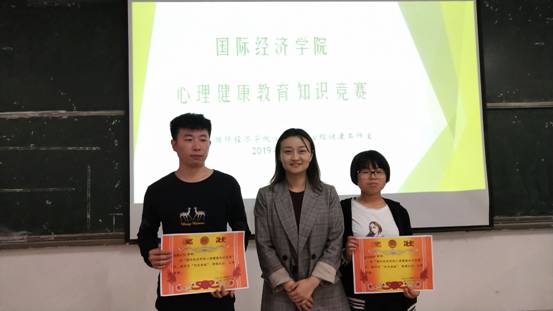 为了引导大学生关注自身的心理健康,促进学生健康成长,营造良好的校园心理教育氛围。5月5日晚6:30,国际经济学院心理健康知识竞赛总决赛在2J226多媒体教室如期举行。学院心理辅导站负责人常伟、陕西中医药大学心理实习老师李朝辉、张应珍、关亮辉、李欢等5名老师应邀参加活动并担任评委。活动由‘心语心悦’心理健康工作室社长秦心乐和安嘉翔同学主持。