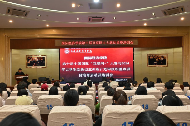 为更好指导我院师生参加第十届中国国际“互联网+”大学生创新创业大赛与2024年大学生创新创业训练计划项目申报,深入开展创新创业教育改革,强化创新创业实践,提高教师创新创业实践指导能力,培养学生创新创业思维及实践能力,国际经济学院于2023年11月17日下午在学术报告厅组织开展第十届中国国际“互联网+”大赛与2024年大学生创新创业训练计划项目申报和重点项目培育启动暨培训会。此次会议由学院党总支副书记荣超主持,创新创业学院院长助理李春苗、国际经济学院执行院长冯明、院长助理张丽、办公室主任张艳、全体专职教师、辅导员老师及全体学生参加会议。
