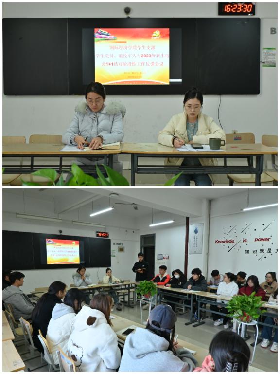 为进一步推进学生党员、退役军人与2023级新生宿舍1+1结对共建活动,增强学生党员和退役军人联系群众的主动性,发挥学生党员和退役军人的先锋模范作用。11月16日16:00点,国际经济学院学生党支部于2J420组织召开学生党员、退役军人与2023级新生宿舍1+1结对阶段性工作反馈会议。学生第一党支部书记徐亚岚、学生第二党支部书记龚子腾、全体学生党员、退役军人以及发展对象参会。