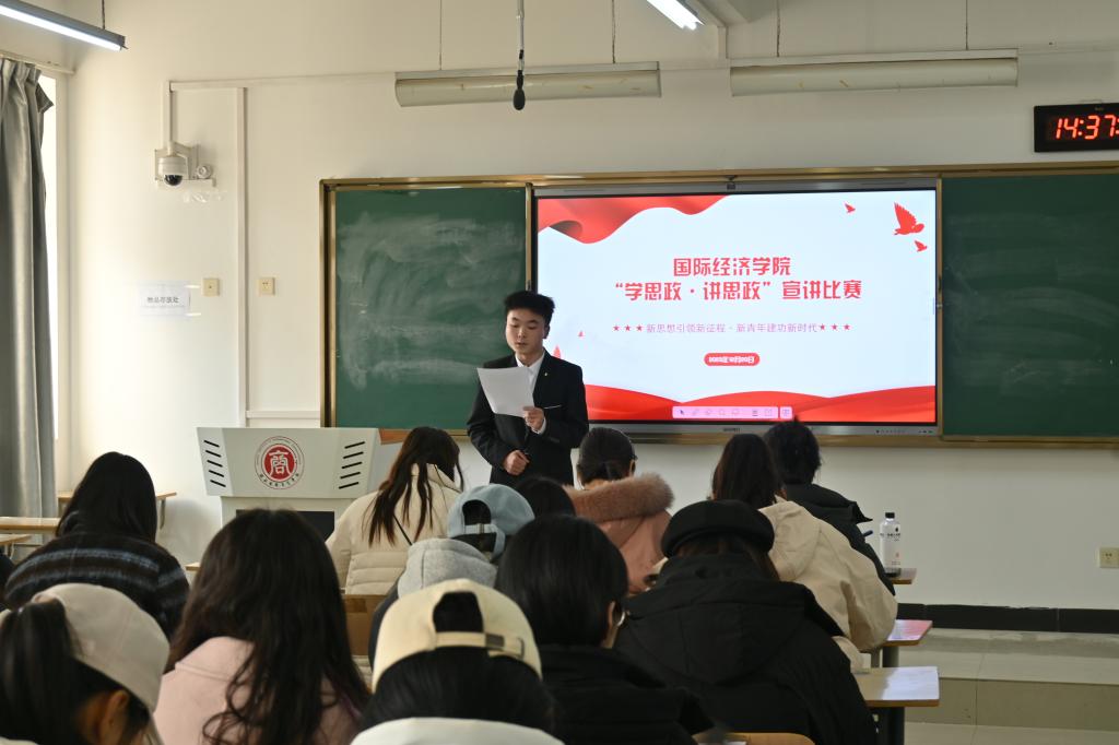 为深入贯彻习近平总书记关于高校思想政治工作的重要讲话精神,落实立德树人根本任务,用好思政文化长廊“大思政课”实践教学基地的思政资源,营造全员全过程全方位育人的浓厚氛围,推动师生思想政治工作常态化、长效化,形成施教者和受教者一体化发展的教育新场域。12月20日下午,国际经济学院于2教422举办本次宣讲比赛初赛。此次比赛由团总支书记常伟老师、学生第二党支部书记龚子腾、国际经济与贸易教研室主任刘志文、金融工程教研室孟令瑶老师参与评审工作,所有预备党员、发展对象及入党积极分子参加活动。