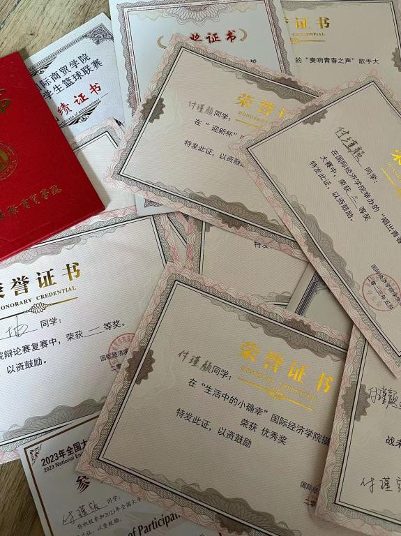 在过去一年,我先后顺利通过大学英语CET-4考试,全国计算机考试一级考试,获得国际经济学院优秀志愿者,“赓续红色基因,感念师恩情谊”征文比赛二等奖,国际经济学院诗词大会团体一等奖,数学竞赛三等奖,大学生英语写作大赛优秀作品奖