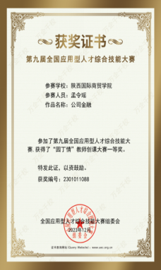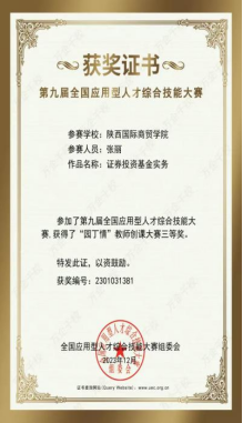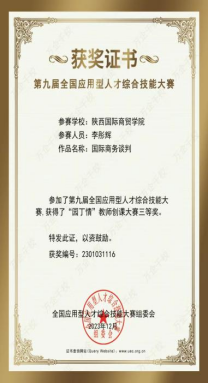第九届全国应用型人才综合技能大赛一等奖1项和三等奖2项