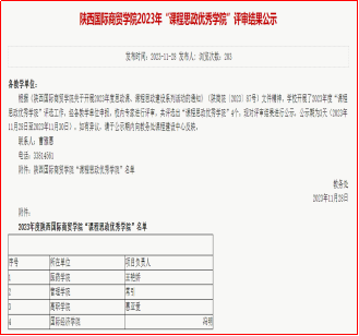 一是人才培养方案修订,将习近平新时代中国特色社会主义思想的观点写入培养目标、毕业要求,开设《习近平新时代中国特色社会主义思想概论》等思政课程。二是课程标准制定,将课程内容与思政元素结合,初步完成基于认知理论与OBE的课程思政“四阶轨迹图法”建设方案,在《国际商务谈判》课程中试点实施,完成7门思政示范课及思政案例,40门课程的典型思政案例与教学设计。三是课程资源建设,构建基于BOPPPS模式思政元素融入教学内容的教学设计,形成具体方案和模板,下发全体教师改进教学设计;已有50门课程完成教学设计,形成思政教学改革特色。四是理论与实践结合。开展三下乡暑期实践活动,追寻红色故事、传承延安精神,将思政元素融入社会实践。学院获我校2023年课程思政优秀学院。