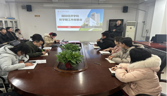 为确保2024年各项工作的顺利开展和教学秩序稳定运行,2024年2月22日下午,国际经济学院在西咸会议室召开本年度春季学期开学工作会议。会议由执行院长冯明主持,党总支副书记荣超、院长助理张丽以及全体教职工参加会议。