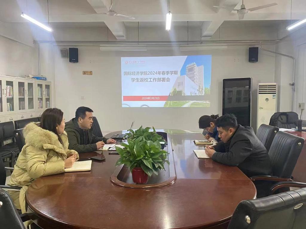 扬帆启航正当时,凝心聚力开新局,国际经济学院全体学管人员将以饱满的热情、积极的态度迎接新学期的各项工作,确保新学期学院各项工作平稳有序开展。狠抓责任落实,坚守工作底线,以学生为中心,确保2024春季学期正常、安全、有序开学。
