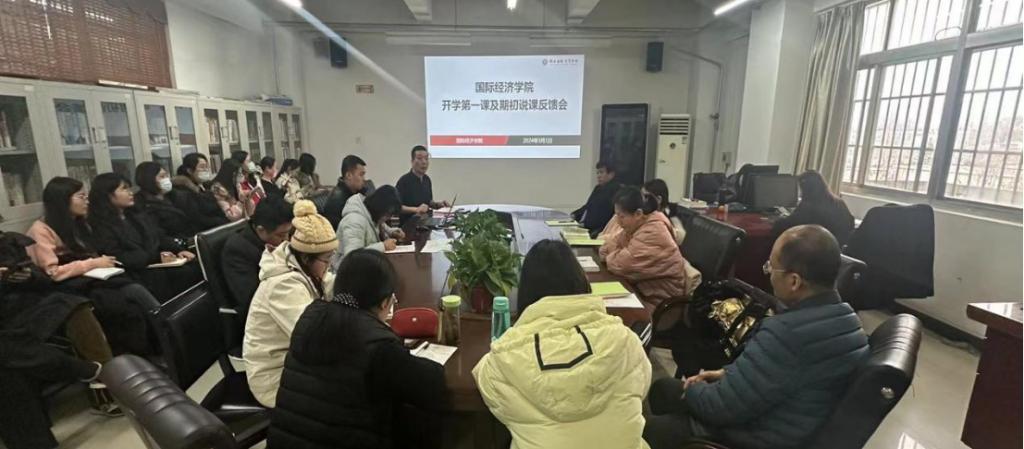 为提高教育教学质量,提升学院教师课堂教学水平,2024年3月1日,国际经济学院在西咸会议室召开了本学年开学第一课及期初说课反馈会,学院全体教师参会,会议由执行院长冯明主持。
