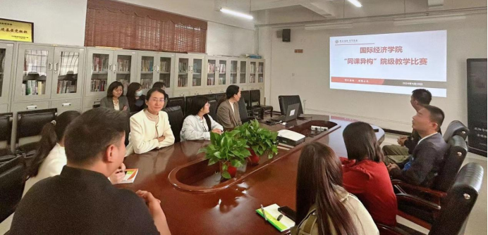在这个春意盎然,如诗如画的四月,国际经济学院开展同课异构教研活动,为促进我院教师专业化发展,推动教师的自我反思、同伴互助、专业引领,从而进一步提升课堂教学质量并打下坚实的基础。