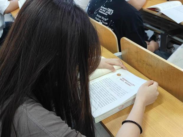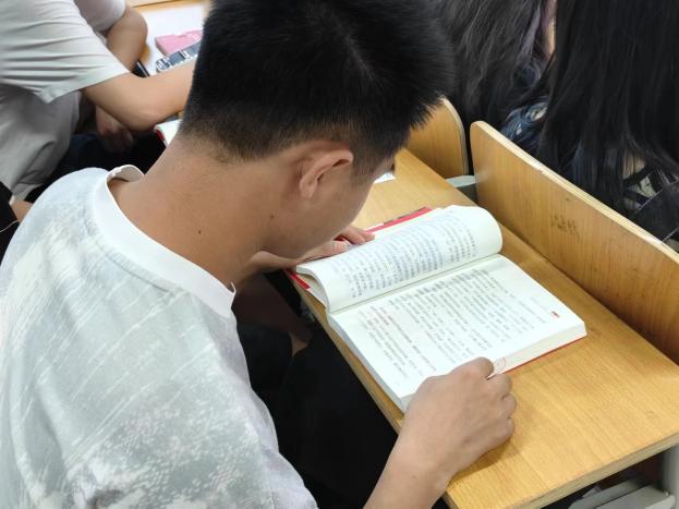 在分享会上,黄梦园,谢豫飞和曾奕然这三位同学依次上台进行分享。同学们结合自身的学习和生活实际,分享自己对《习近平著作选读》的理解和感悟。各位同学在分享会上认真阅读习近平著作经典,领会其精神实质和丰富内涵,不断增强“四个意识”、坚定“四个自信”、做到“两个维护”。