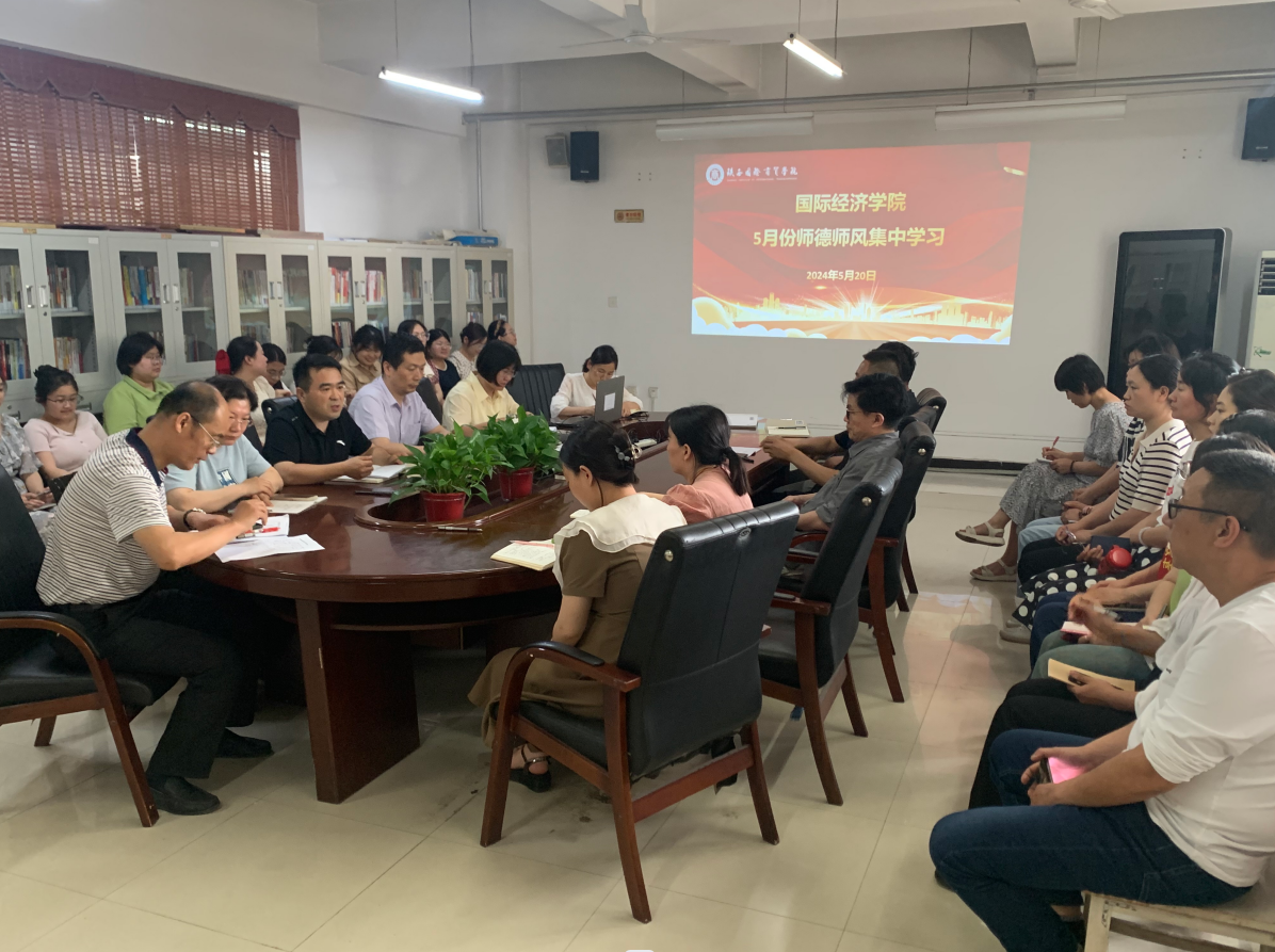 为深入学习贯彻习近平总书记关于教育的重要论述和关于教师队伍建设的重要讲话精神,不断提高教师队伍的政治素质、师德修养和专业素养,根据《陕西国际商贸学院 2024 年师德师风建设活动实施方案》,结合学院师德师风建设实际,520日下午,国际经济学院在西咸会议室召开5月份师德师风集中学习会,学院班子成员及全体教职工参加会议,会议由党总支副书记荣超主持。