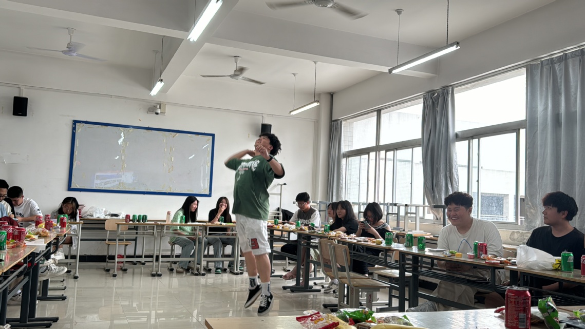 本次组织生活会充满了欢声笑语和青春活力。活动中设置了多个有趣的游戏,抢凳子游戏中,同学们围绕着凳子快速移动,竞争激烈而欢乐;击鼓传花游戏更是让紧张与期待交织,精彩的表演不断呈现;数字炸弹游戏则考验着大家的反应和判断,现场不时传来阵阵惊呼与欢笑;报数成团游戏也让大家充分发挥团队协作精神。