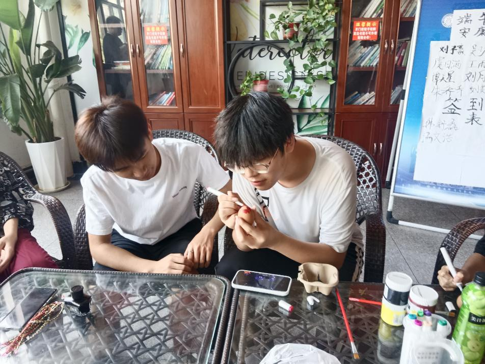 活动现场充满了浓厚的传统文化氛围。首先是对端午节由来的讲解,让同学们深入了解端午节的历史背景。接着,同学们在入口处的中式卷轴上签下自己的名字,完成独特的卷轴签到。随后的画彩蛋环节更是趣味十足,同学们在绘制彩蛋的过程中,既感受到了手工艺的乐趣,也寓意着生命力的旺盛。