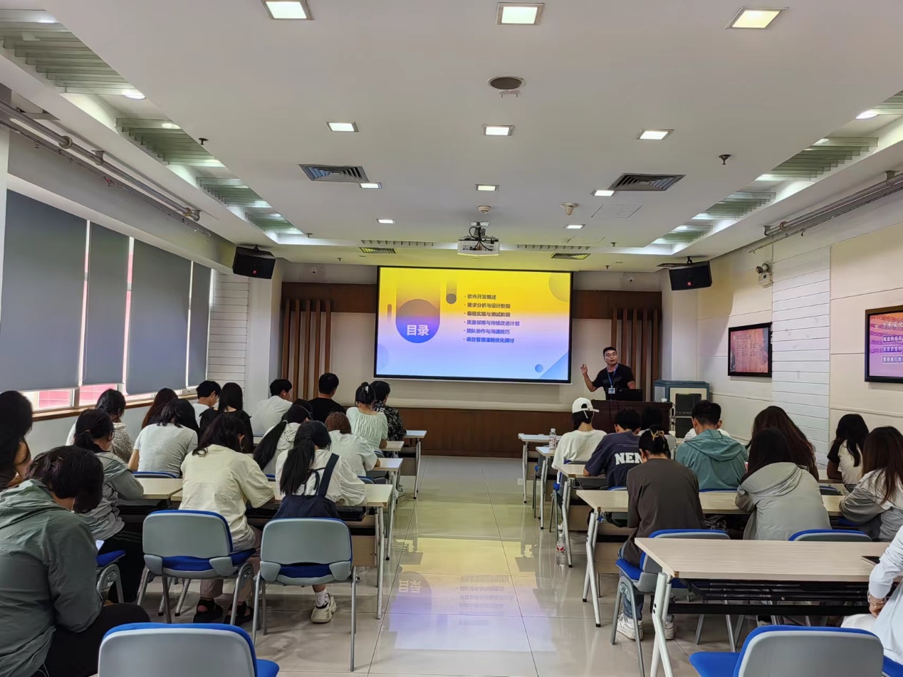 步长集团信息部门的专家,为学生们详细讲解了大数据专业在步长集团实际工程项目中的应用情况,包括软件开发概述、需求分析与设计阶段、编程实现与测试阶段、质量保障与持续改进计划、团队协作与沟通技巧、项目管理流程优化探讨等关键环节。学生们对大数据项目开发有了更加直观的认识。