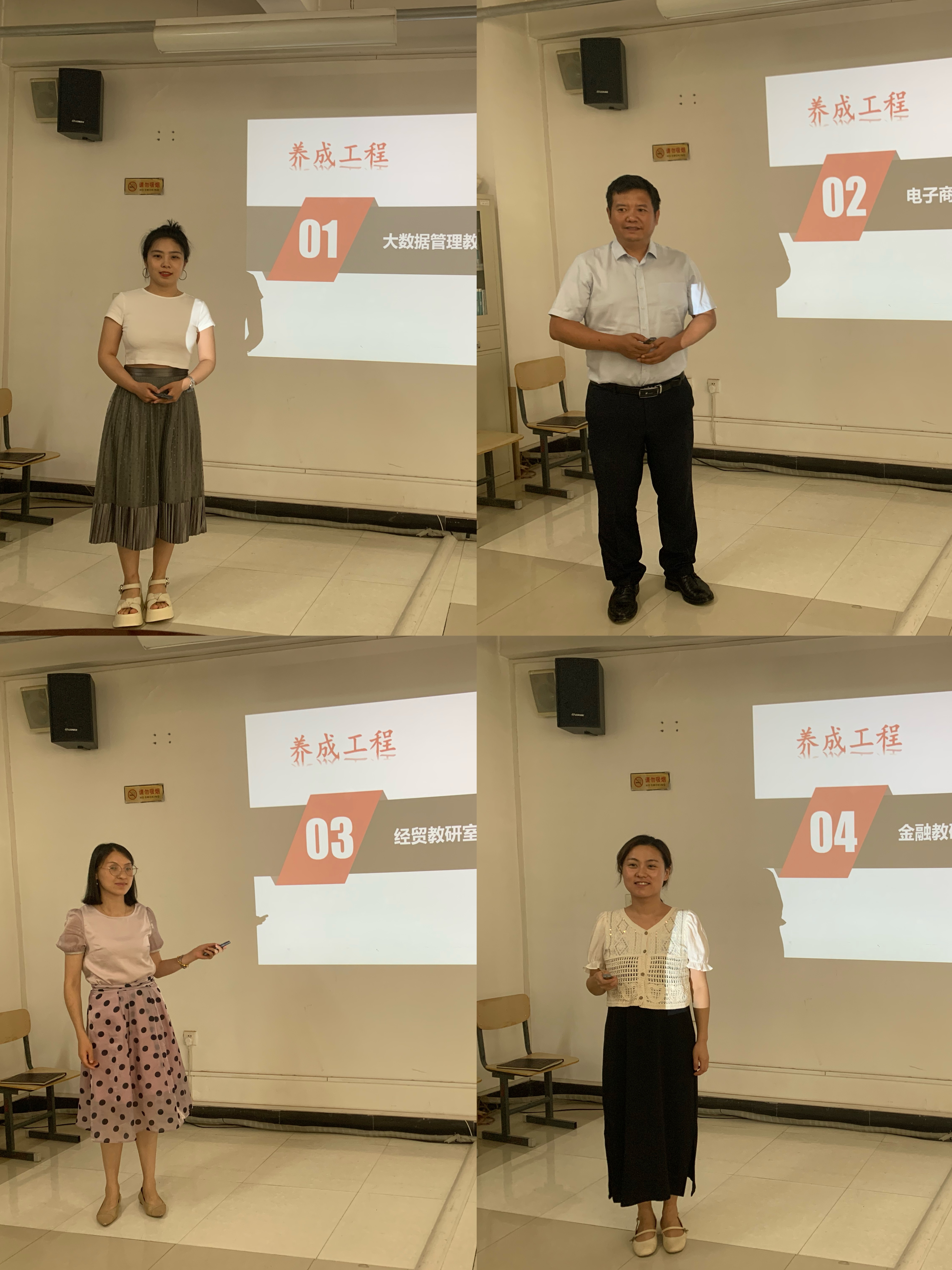 随后,大数据管理教研室吴姝煜老师从教学能力提升、合作精神以及指导学生等方面分享了自己的成长;电子商务教研室李超老师以专业能力提升方面着手,分享了近一年来学习养成工程以后从教学思路、教学方法、个人素养提升等方面成长;经贸教研室王艳老师分享了通过磨练自身的品德素养进而影响身边同事、学生的小故事;金融教研室张雯翰老师表示通过学习养成工程不但培养了坚定的理想信念,还在实践中提升了个人能力。