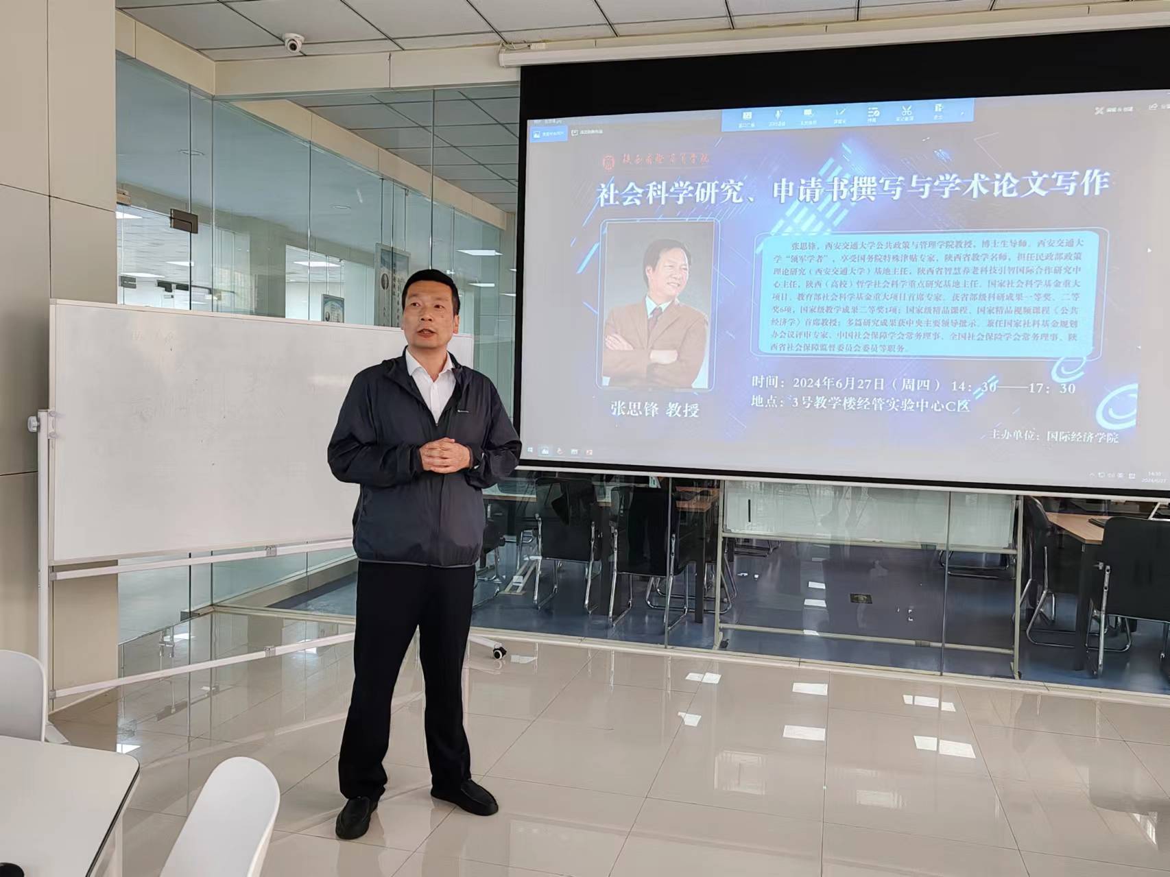 为进一步提升学院教师的科研能力,激发科研热情,推动社会科学研究的深入发展,国际经济学院于6月27日下午成功举办了“社会科学研究、申请书撰写与学术论文写作”科研讲座。此次讲座吸引了学院众多教师及科研骨干的积极参与,现场气氛热烈,互动频繁。