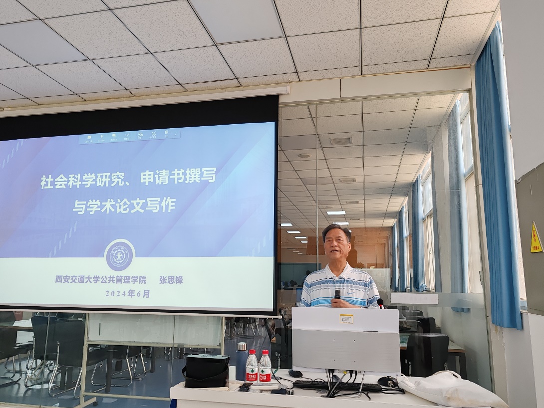 张思锋教授则重点就社会科学研究、社会科学基金课题申请书撰写进行了详细阐述。社会科学基金项目的选题与申报书撰写他结合个人多次成功申报项目的经验,梳理了选题原则及申报书撰写的注意事项,强调了前期准备和学术积累的重要性。他指出,选题应紧跟时代发展方向,围绕国家和地方发展战略,开展跨学科和跨领域研究,深入挖掘科研的社会价值和学术贡献。