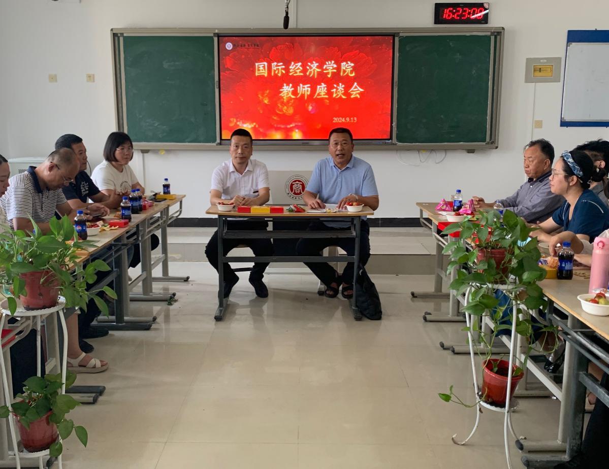 为深入贯彻党的教育方针,进一步激发教师队伍的活力与凝聚力,强化教师们的教育报国情怀与筑梦育人使命,国际经济学院于9月14日下午4点在2教417教室举办了一场教师座谈会。此次活动促进教师间的交流与合作,共同探索新时代下高等教育的新路径,努力成为党和人民满意的“有理想信念、有道德情操、有扎实学识、有仁爱之心”的“四有”好老师。