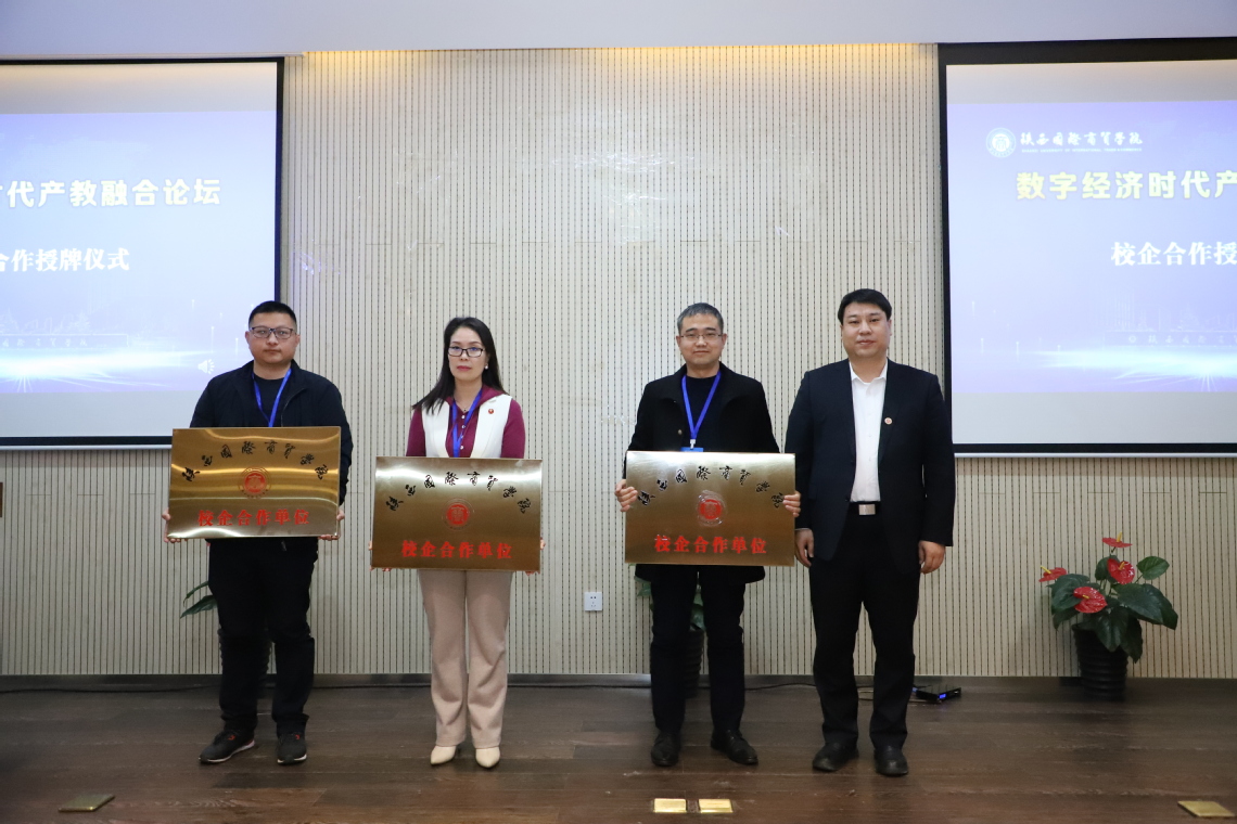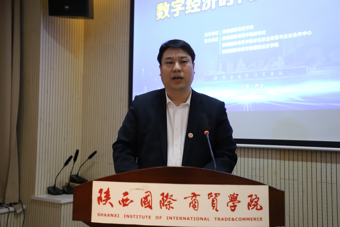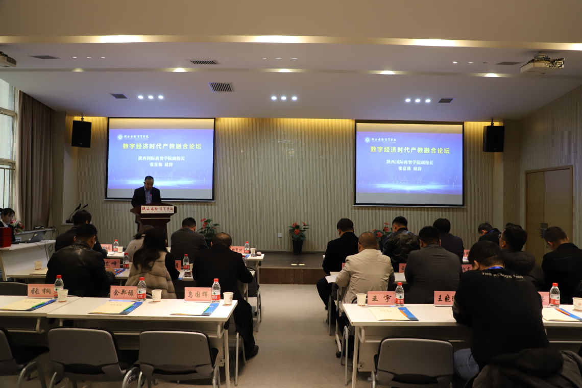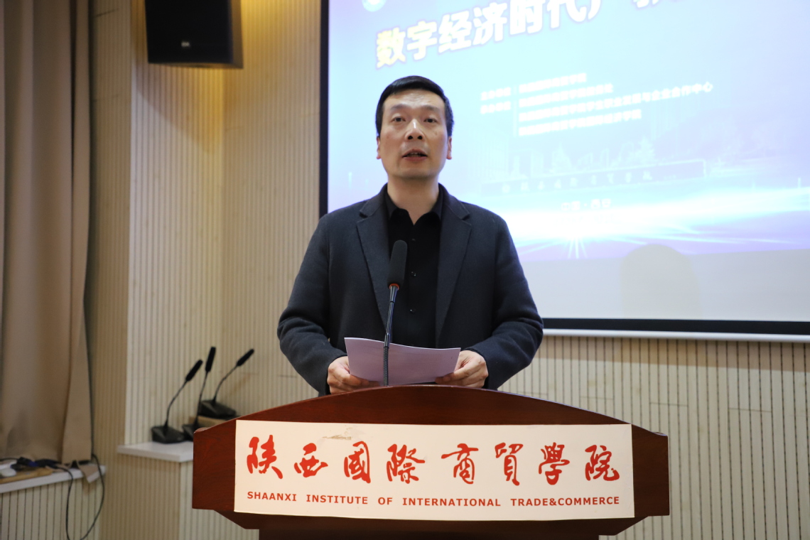 2023年11月25日下午,陕西国际商贸学院数字经济时代校产教融合论坛成功举办。陕西国际商贸学院副校长张富林教授、校长助理张利军、教务处处长蔺小清,以及京东西北分公司校企合作经理白光泽、东方财富信息股份有限公司经理李博伟、美林数据技术股份有限公司总监杨东涛、新道科技股份有限公司西北区总经理孙胜儒、陕西众维云创运营服务有限公司经理程雪姣等23家企业负责人和部分师生代表100余人参加了本次论坛。论坛由国际经济学院执行院长冯明主持。