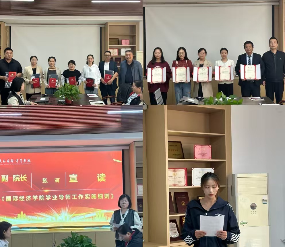 随后,学院副院长张丽解读了《国际经济学院班级学业导师工作实施细则(2024年修订版)》,学院党总支书记王彪为23级学业导师颁发了优秀学业导师荣誉证书,学院院长冯明颁发了24级学业导师聘书。