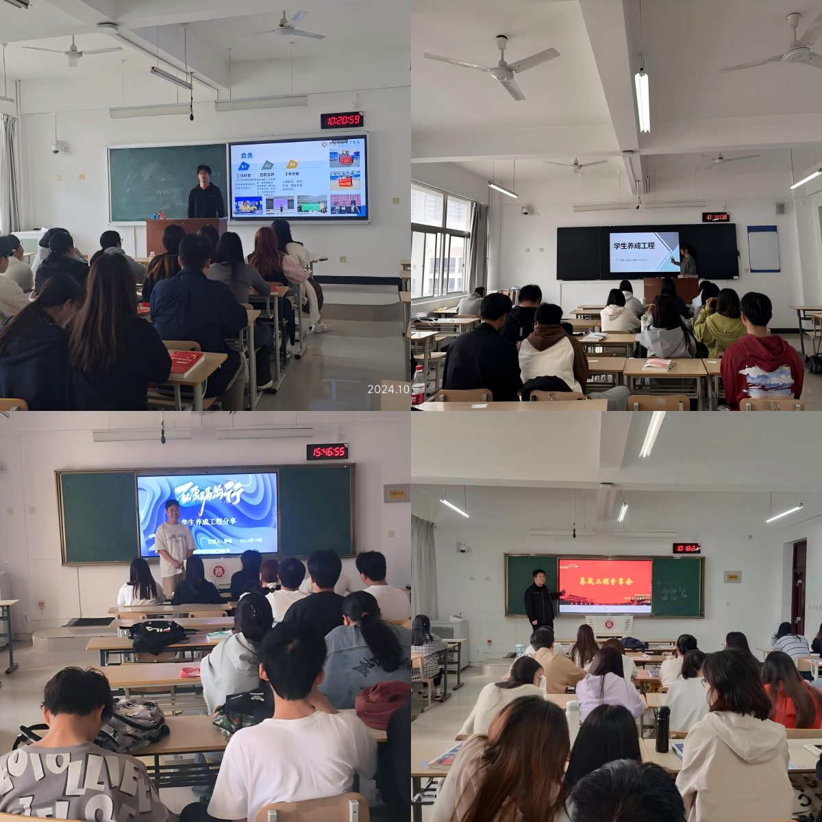 学生养成工程是学校人才培养的重要举措,旨在全面提升学生的综合素质,培养具有良好品德、扎实专业知识和较强实践能力的优秀人才。2024 年 10 月 9 日至11日,国际经济学院学生养成工程分享会在学院各班成功举行。本次分享会由国际经济学院养成工程宣讲团精彩呈现。