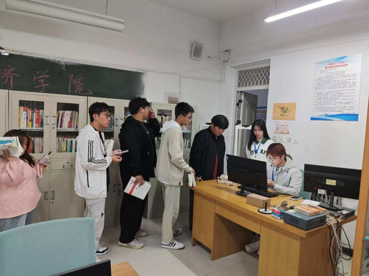为确保借阅活动的顺利进行,优化师生借阅体验,悦享ING工作人员充分准备,细致安排。在借阅活动期间,工作人员热情服务,热心引导同学们借阅图书,方便同学们快速找到自己感兴趣的书籍。同时积极与前来借阅的同学进行交流,汲取有效建议,进一步改进工作细节。