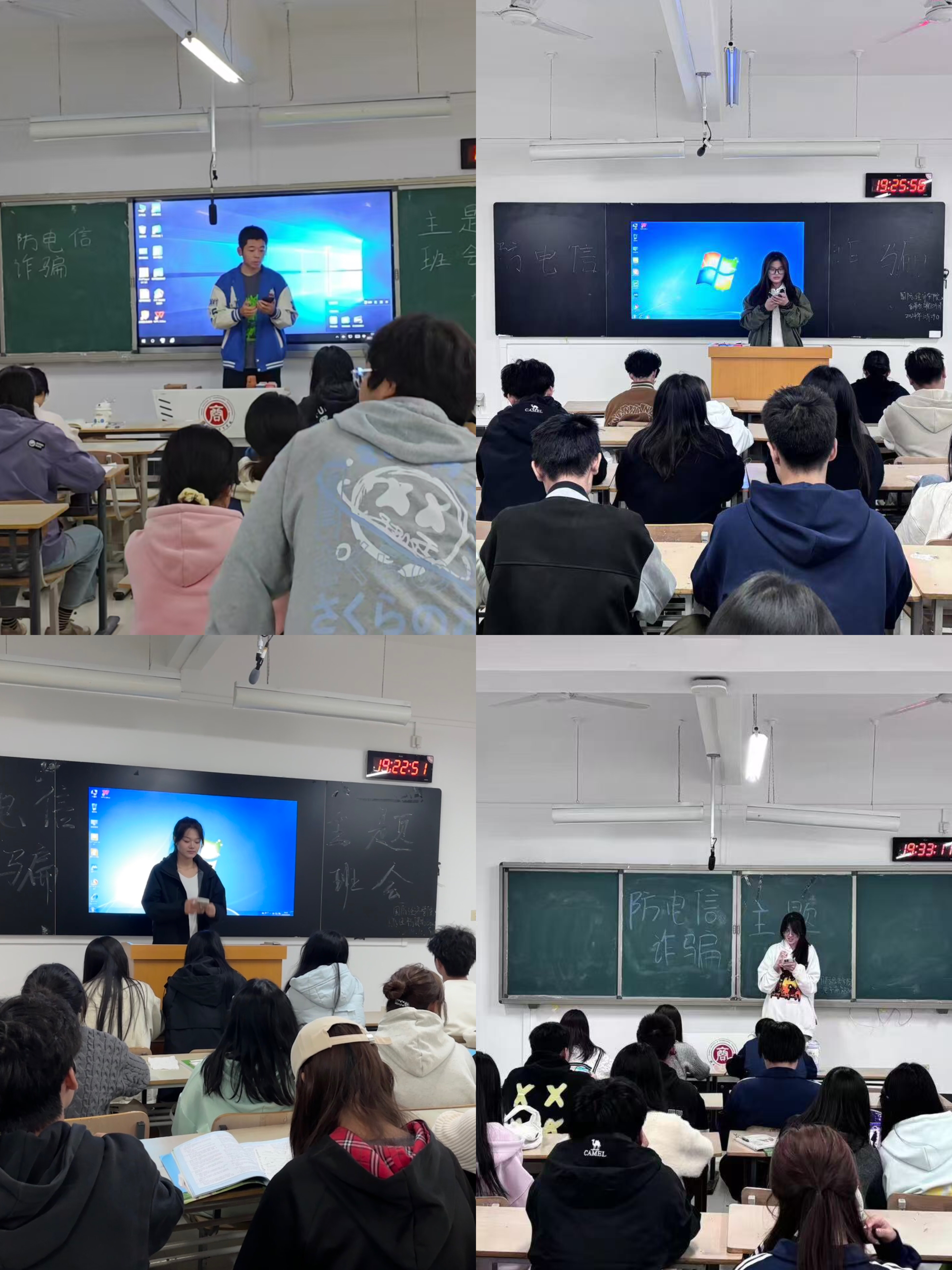 为进一步加强校园防范电信诈骗宣传力度,提升学生的安全防范意识,预防和减少各类诈骗事件,共同营造安全和谐的校园环境。10月30日,国际经济学院各年级分别召开防范电信诈骗班会,班会由各班班长主持,全班学生参加。