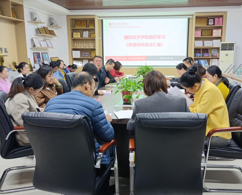 为深入贯彻落实习近平总书记关于教育的重要论述和全国教育大会精神,加强和改进新时代师德师风建设,全面提升教师思想政治素质和职业道德水平,根据陕西国际商贸学院《关于“师德师风建设年”11月份工作安排的通知》,结合学院师德师风建设实际,11月15日下午,国际经济学院在西咸会议室召开“11月师德师风为人、为事、为学学习交流会”,学院班子成员及全体教职工参加会议,会议由党总支书记王彪主持。