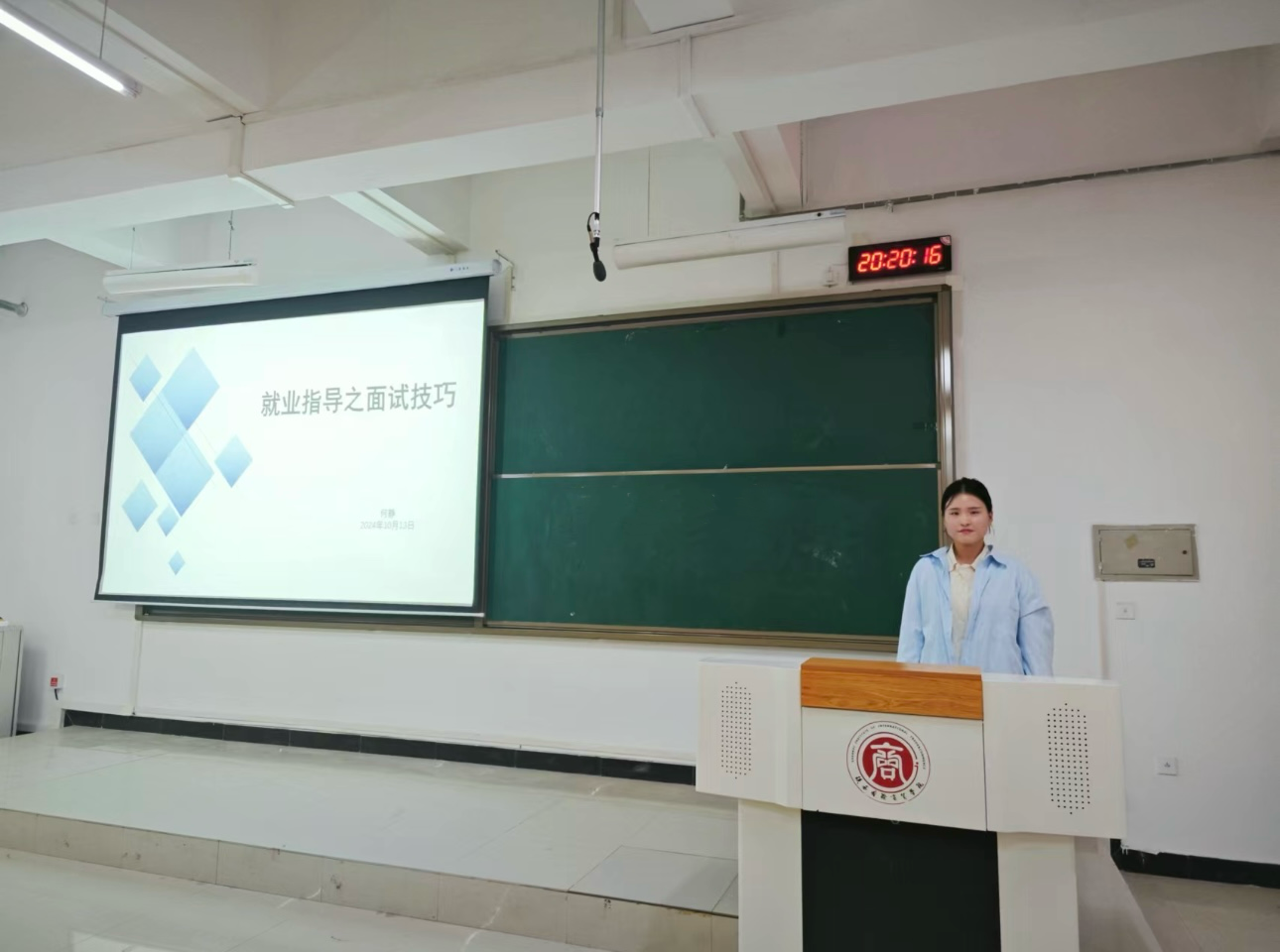 为帮助学生树立正确的就业观念,提高就业竞争力,2024年10月15日晚上,国际经济学院在2教226教室召开2025届毕业生面试技巧的培训。学院2025届全体毕业生参加会议,会议由2025届毕业生辅导员何静老师主持。