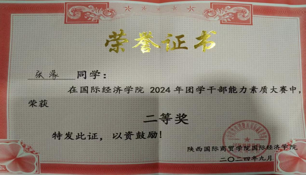 个人荣誉:“互联网+”大赛优秀奖,大学生职业规划大赛优秀奖,大创赛优秀奖,权益知识竞赛三等奖,团总支素质能力大赛优秀奖,企业文化大赛院赛三等奖,团学干部能力素质大赛二等奖。