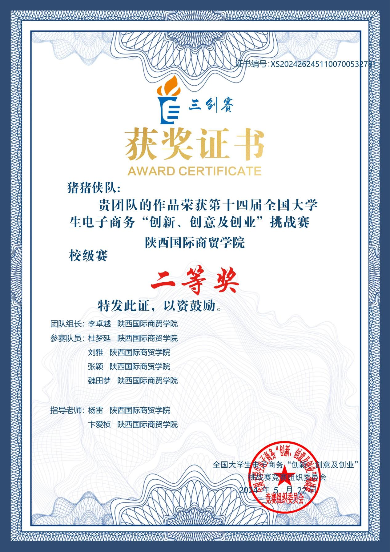 个人荣誉:东方财富杯省赛三等奖,三校赛常规赛校级二等奖、最佳创新奖,连获两届校级优秀信息员,连获两届院级互联网+三等奖,第二届全国ETF模拟投资菁英挑战赛优秀奖,思想政治理论课综合实践校级优秀奖。