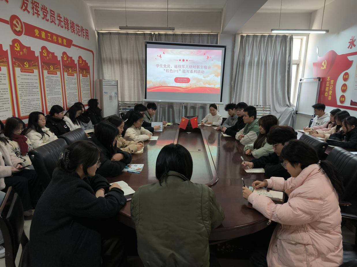 为扎实推进学生党员、退役军人与新生宿舍“1+1红色结对”系列活动有序开展,2月28日下午国际经济学院学生党支部在党员活动室召开2025年学生党员、退伍军人结对宿舍“红色1+1”系列活动,此次会议由学生党支部书记岳琪峰主持,21名学生党员、退役军人,以及大一新生宿舍舍长参会。