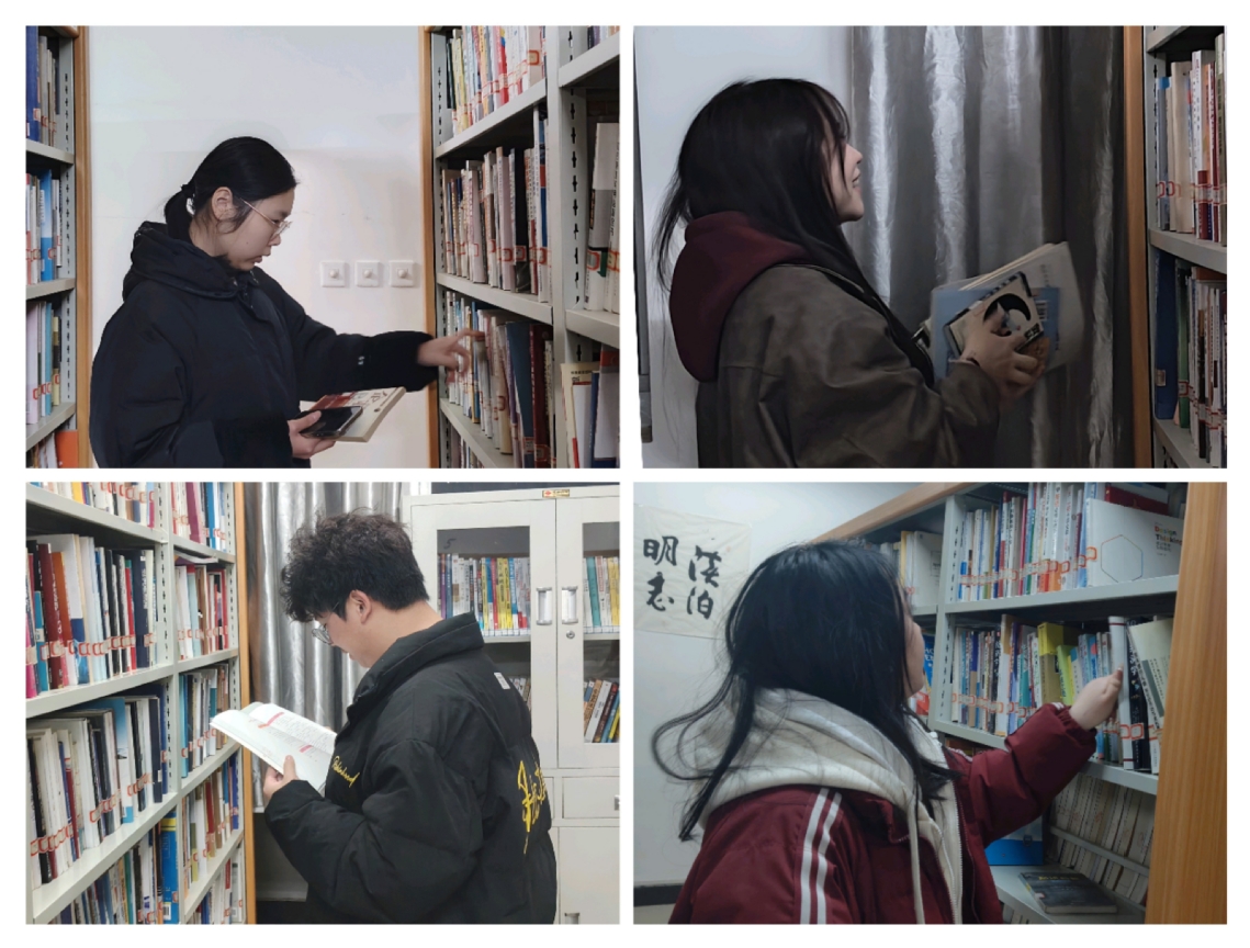 书架前瞬间热闹起来,大家或是独自专注搜寻,或是三两成群轻声讨论,眼神中满是对知识的渴望。在人文社科类书架旁,一位同学拿起一本关于哲学思想的书籍,仔细翻阅,脸上露出若有所思的神情;另一边,自然科学区域,有同学为找到一本前沿的科学研究著作而欣喜不已。借阅活动在我室工作人员的引导下有序进行。