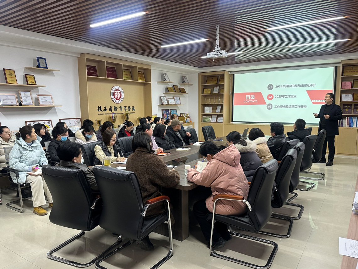 为全面落实“三结合五赋能”应用型人才培养理念,扎实推进审核评估整改和学科建设,2025221日,国际经济学院在学院会议室召开2025年重点工作部署会议,全面回顾2024年工作,并对新学期的重点工作进行详细规划与部署。学院书记王彪,副院长张丽及全体教职工参加了本次会议。会议由学院院长冯明主持。
