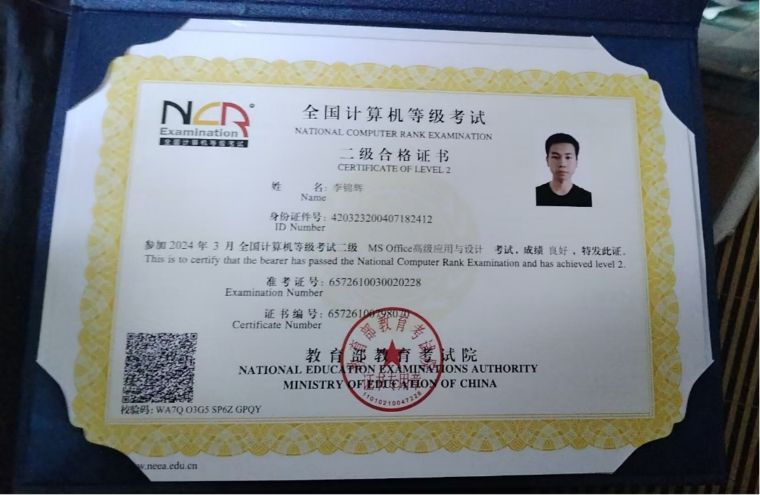 个人荣誉:2023年全国大学生创新创业大赛中本人所负责的项目《“驿”点爱》获批省级立项,目前已进入结项。2024年全国大学生创新创业大赛中本人所负责项目《资链管家—区块链数字资产管理》获批省级立项,目前处于开题阶段。2024年全国计算机等级考试荣获二级良好。2024年通过个人努力学习取得初级银行从业资格证书。在2023学年与其余舍友7人在优秀宿舍评选活动中取得“文明宿舍”称号。