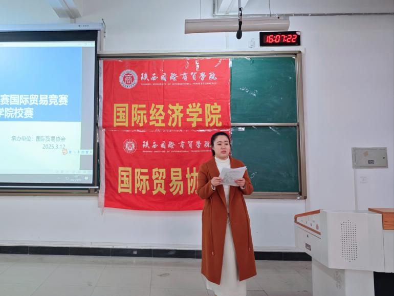 2025年3月12日,由国际经济学院主办、国际贸易协会承办的2025年商业精英挑战赛国际贸易竞赛校级选拔赛在2J226教室成功举办。本次大赛由国际贸易协会李浩嘉主持,全体指导老师和参赛学生参与。