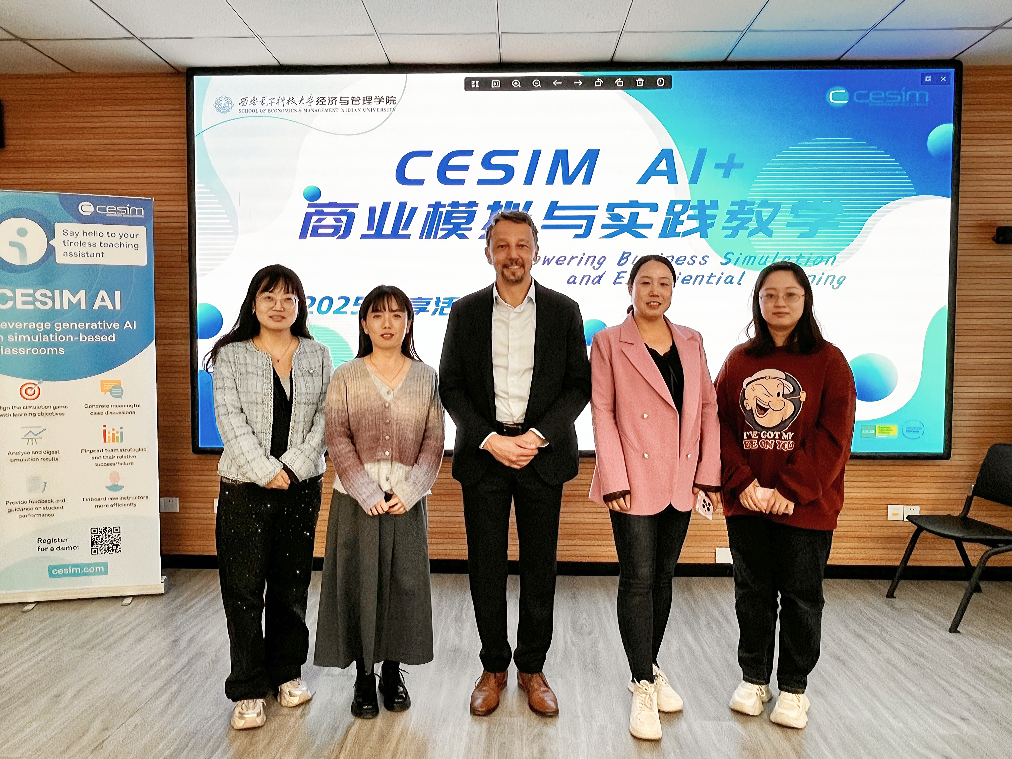2025年3月25日,国际经济学院金融教研室孟令瑶、成坤宇老师,以及大数据应用教研室姜怡悦、刘俊、张宇陶老师,参加了由西安电子科技大学经济管理学院与芬兰CESIM联合举办的“INVEST投资管理模拟&AI实践教学体验与研讨活动”。本次活动聚焦金融行业数字化转型与ESG投资趋势,探索“理论+实践+AI反馈”三位一体的教学新模式,为高校金融教育创新提供了前沿思路。