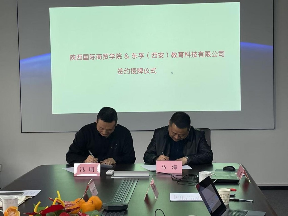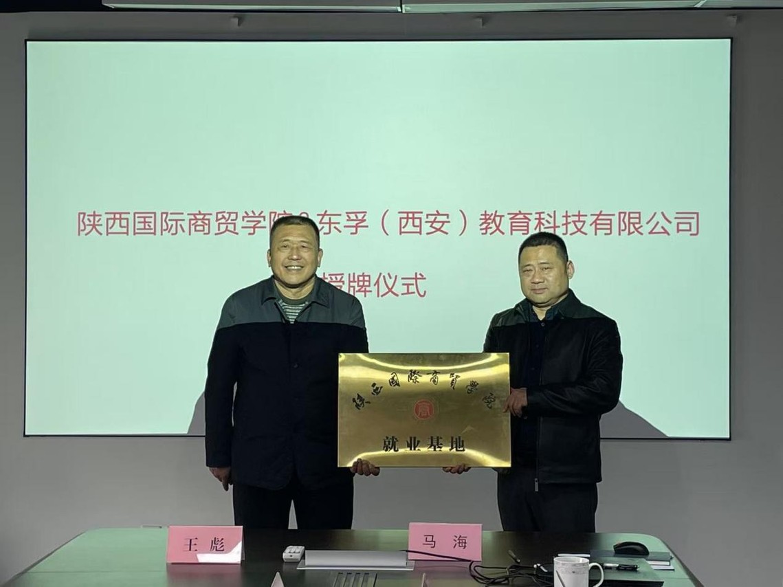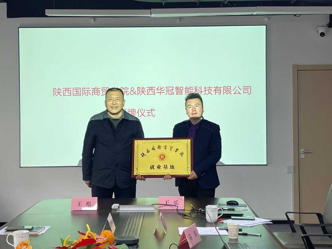 双方举行签约授牌仪式。两院院长分别与两家企业签署了合作协议,并为企业授牌“陕西国际商贸学院就业基地”。