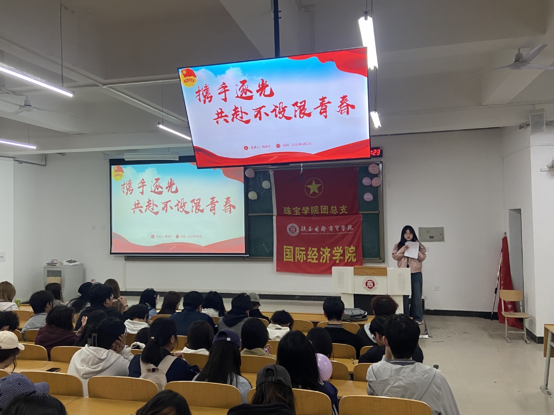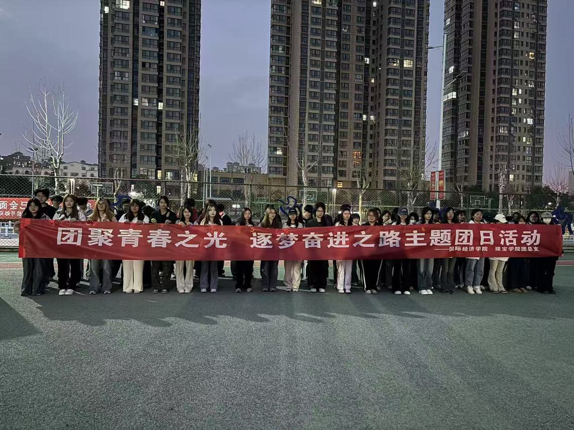 为深入学习贯彻党的二十大精神,增强青年学子团结协作意识,培养勇于突破的奋斗精神,2025年4月2日晚19:00至20:30,国际经济学院团总支与珠宝学院团总支于学校操场联合组织开展“携手逐光 共赴不设限青春”主题团日活动。本次活动由工艺美术B2402团支部、金融工程B2401团支部、国际经济与贸易B2401团支部共同参与,两院团总支组织部统筹组织,各团支书共同主持。