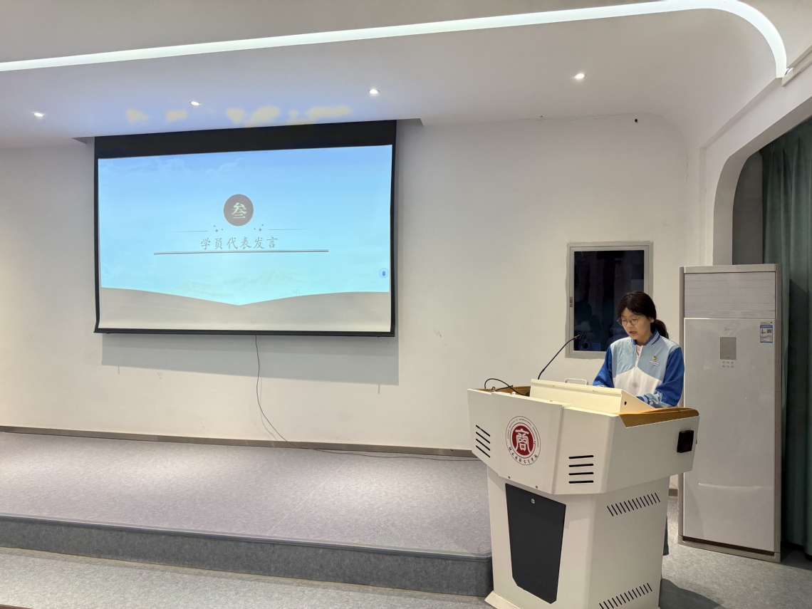 接着,国际经济学院电子商务B2201班李煦阳作为学员代表发言。她表示,很荣幸能够参加此次党课培训,全体学员将以饱满的热情、端正的态度投入学习中,严格遵守培训纪律,认真学习党的理论知识,努力提高自身的政治觉悟和思想认识,用自己的行动去带动身边的同学一起努力,争取早日成为一名光荣的中国共产党党员。
