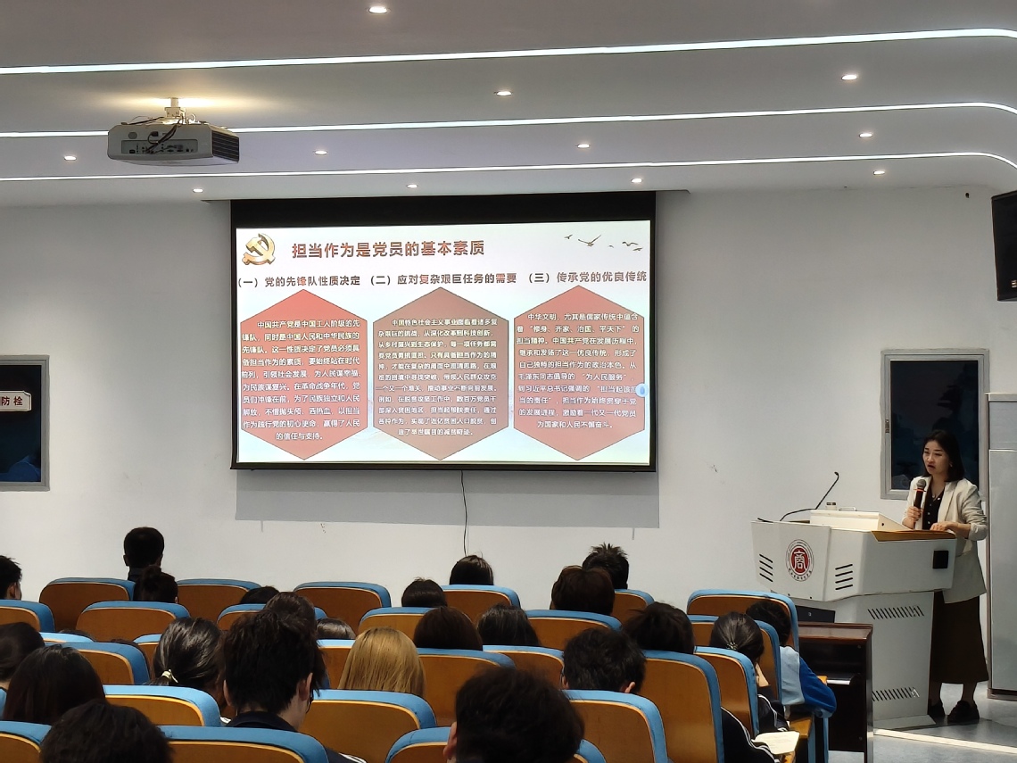 为进一步加强大学生理想信念教育,帮助新时代的青年大学生明确使命担当和人生规划,国际经济学院学生党支部书记常伟从“新时代改革开放伟大成就”“青年大学生的使命担当”“青年大学生的生涯规划”等三方面展开讲述。她凭借丰富的工作经验,从实际出发,结合亲身经历,分享了党员在关键时刻挺身而出、为人民服务的感人故事,并指出,大学生作为社会的未来和希望,要积极参与到党的事业中,发挥先锋模范作用。在学习上勤奋刻苦,在生活中关心同学,在社会实践中勇于担当,将个人的成长与党的事业紧密结合起来。同时强调,同学们要深刻认识到党员的担当不仅仅是一句口号,更要落实到实实在在的行动中去。