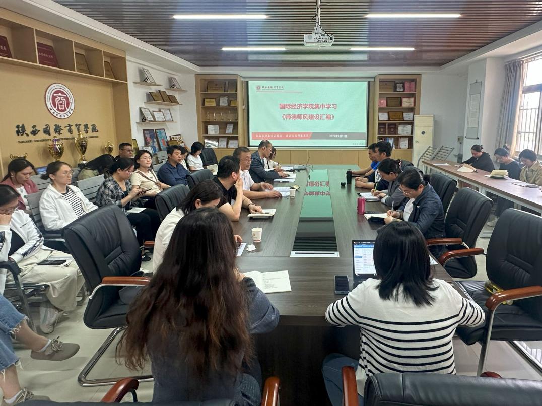 近日,为深入贯彻陕西国际商贸学院“师德师风建设年”的相关要求,国际经济学院积极响应并组织了集中学习《师德师风建设汇编》的活动。此次活动旨在提升教师的思想政治素质和业务水平,进一步推动学院师德师风建设,造就一支高素质专业化的师资队伍。