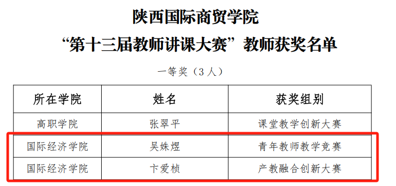 赛后,各教研室迅速开展了教学经验分享活动,获奖教师们积极分享自己的比赛经验和感悟,为学院教师参加其他教学竞赛活动起到了示范引领作用。此次大赛的优异成绩,不仅是对国际经济学院教师教学能力的肯定,更是对学院持续推进教学改革与创新工作的有力证明。