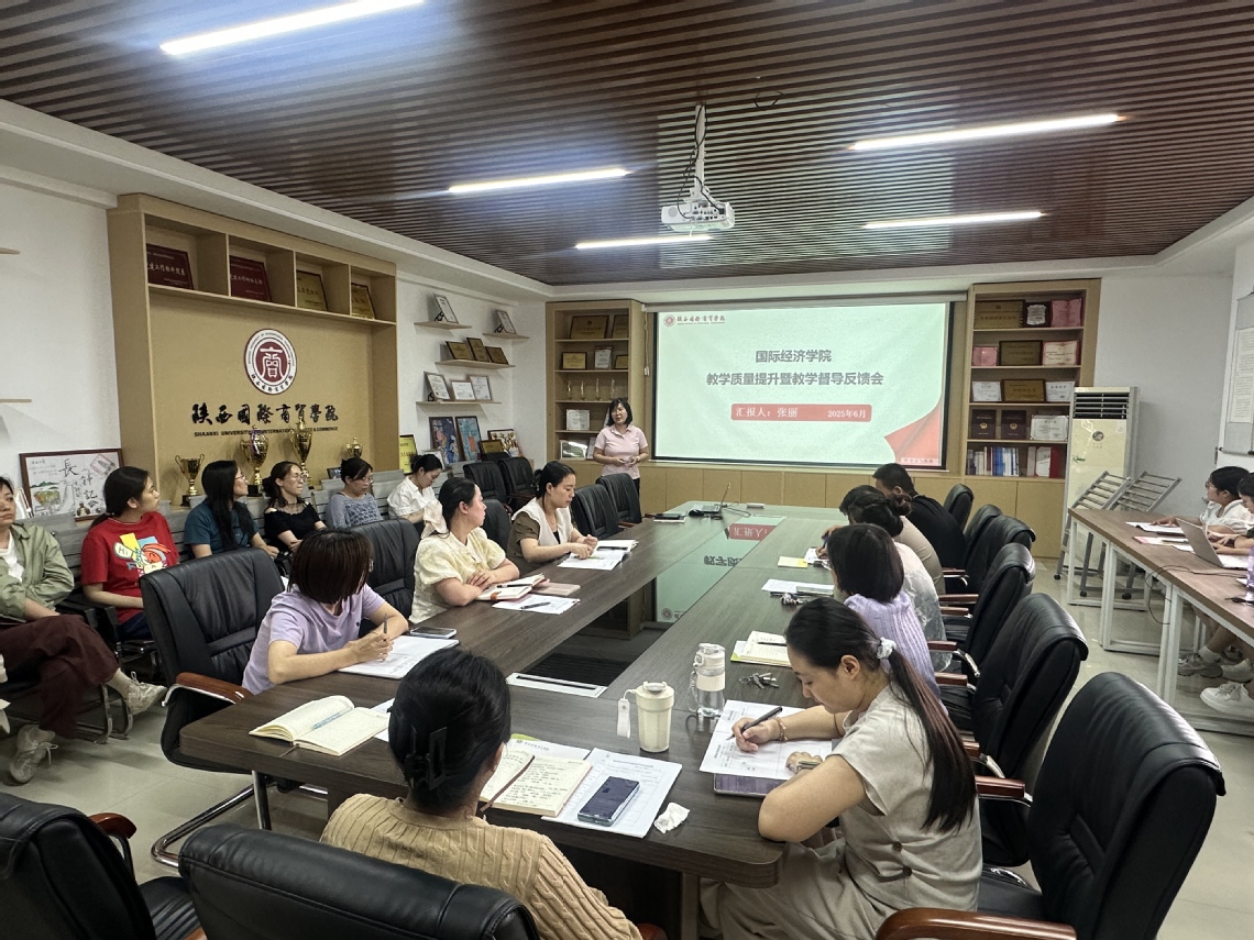 2025年6月4日下午,在西咸会议室召开了国际经济学院教学质量提升暨教学督导反馈会,会议由我院副院长兼督导组组长张丽主持,全体教师参加会议。