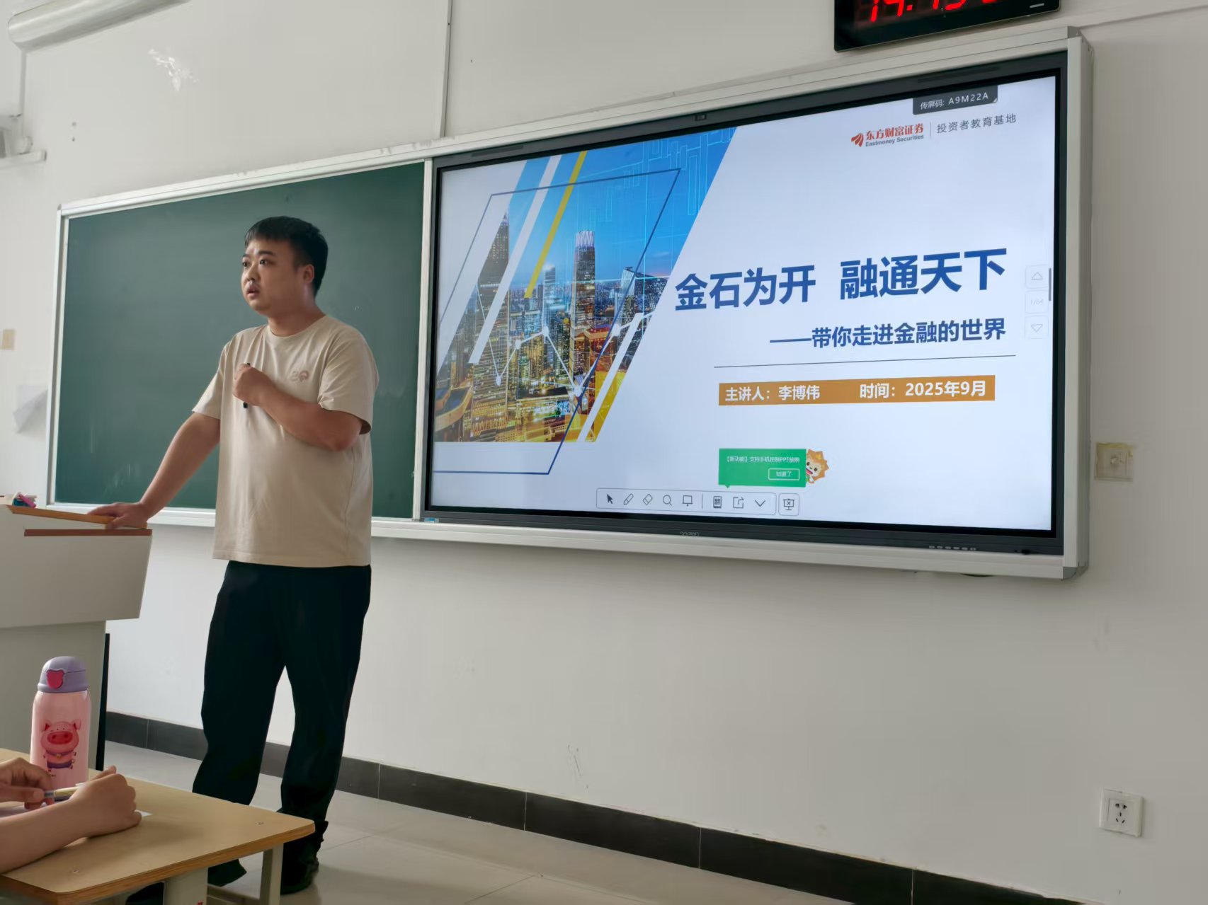 为深化产教融合,助力2025级新生全面了解专业、科学规划学习路径,经济与管理学院组织开展企业导师进课堂 赋能学生成长启航暨新生入学教育系列专题讲座。2025年9月9日,金融工程专业邀请东方财富信息股份有限公司西北分公司市场部经理李博伟来校开展主题为《金石为开,融通天下-带你走进金融的世界》专题报告,为学生成长启智赋能。本次会议由金融教研室主任孟令瑶主持。