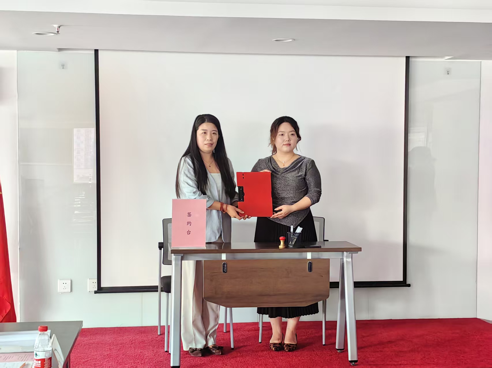 座谈会最后,经济与管理学院与陕西乾朝亿丰企业管理有限公司举行了就业基地签约仪式。刘勤燕院长与陈芷珊部长代表双方签署协议书,标志着双方正式建立长期稳定的校企合作关系。